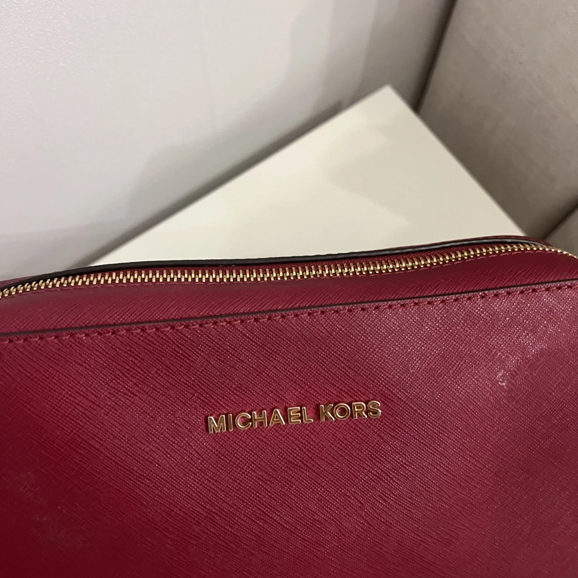 Superfin röd Micheal kors väska utan några skador och rymmer mycket.