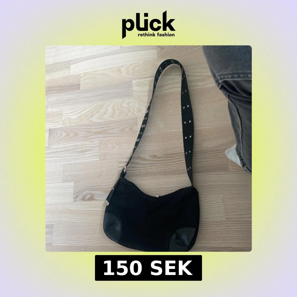 Säljer en svart axelväska från Weekday med axelrem dekorerad med silvriga nitar. Jag säljer den eftersom att jag redan har många väskor. Priset kan diskuteras.