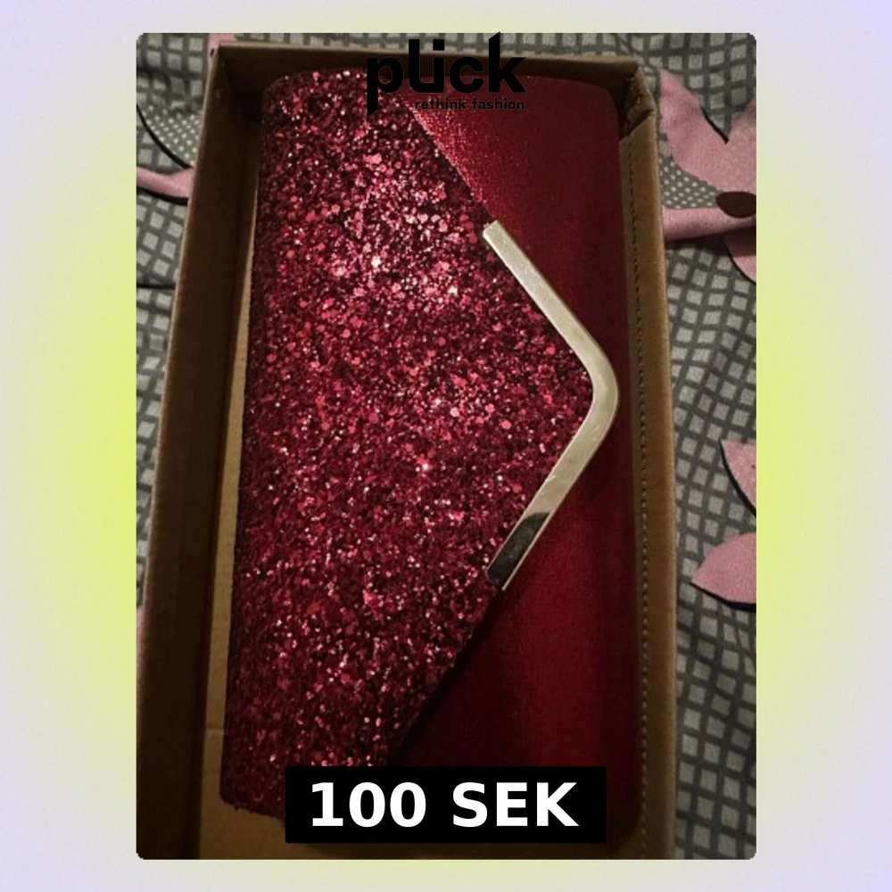 Snygg röd kuvertväska med glittrig framsida och metallkant. Väskan har en elegant och stilren design, perfekt för att lyfta din outfit. Materialet är syntet med massor av glitter som verkligen fångar ljuset.
