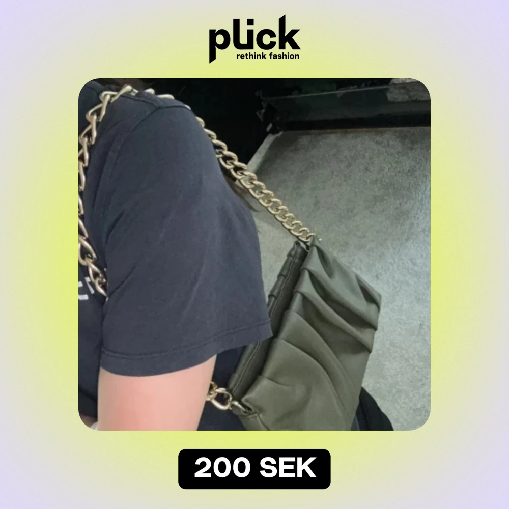 Mörkgrön axelväska med guldfärgad kedja. Medelstor, inuti väskan finns ett fack med dragkedja och ett fack utan dragkedja. Gott om plats!!