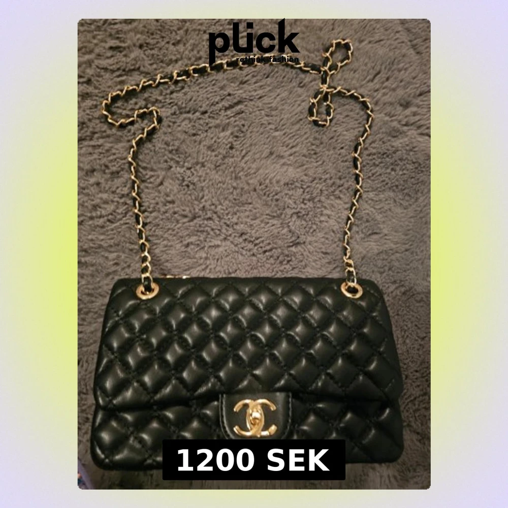 Säljer en klassisk svart quiltad axelväska med guldfärgad kedja och ikonisk CC-detalj framtill. Väskan är tillverkad i skinn och har en tidlös design som lyfter vilken outfit som helst.