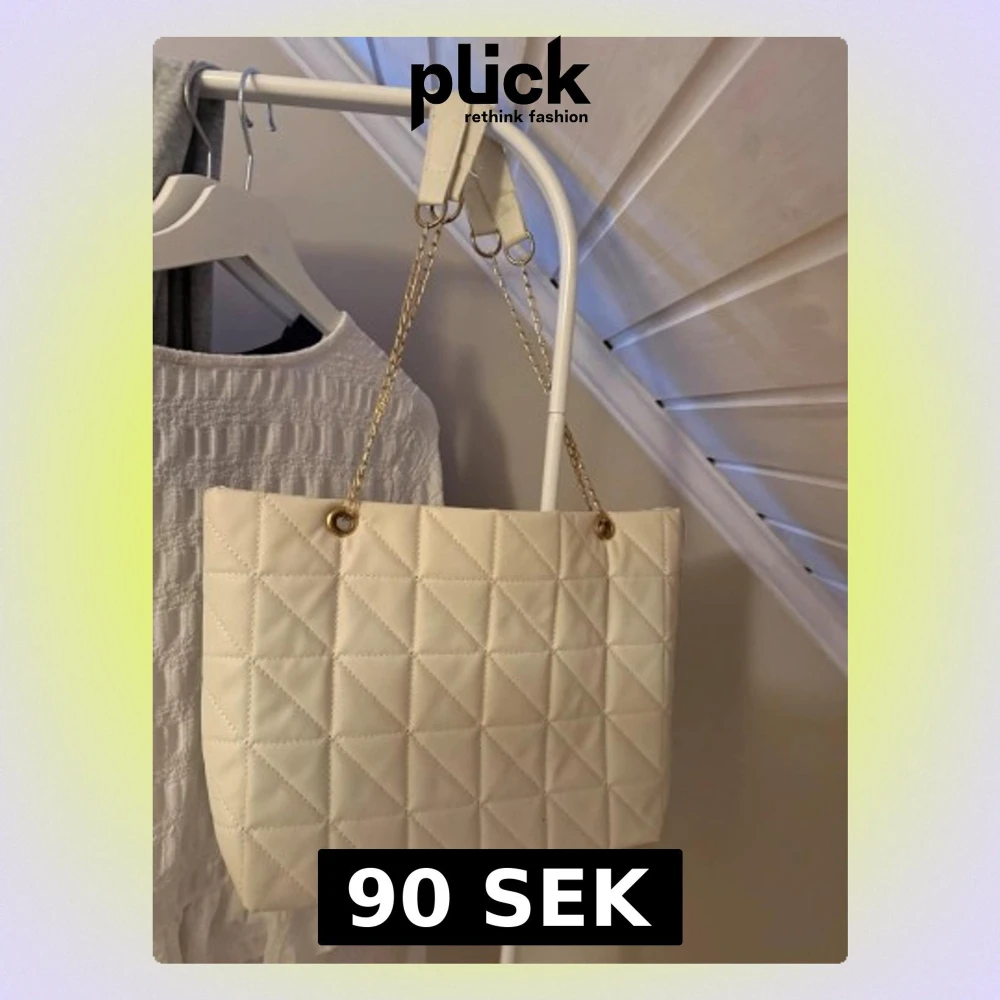 En stilren axelväska i vit färg med guldfärgade kedjehandtag. Väskan har ett rutmönster. Perfekt för dig som gillar en clean och chic look med lite lyxig känsla.
