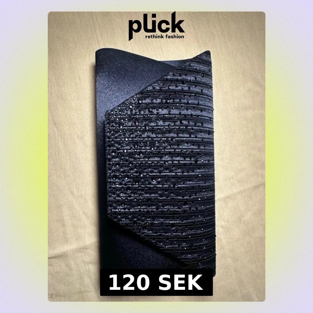 Snygg marinblå kuvertväska i satin med glittriga paljetter på framsidan och ett coolt veckat mönster. Väskan har en stilren och modern form, perfekt att hålla i handen. Materialet är mjukt och har en lyxig känsla.