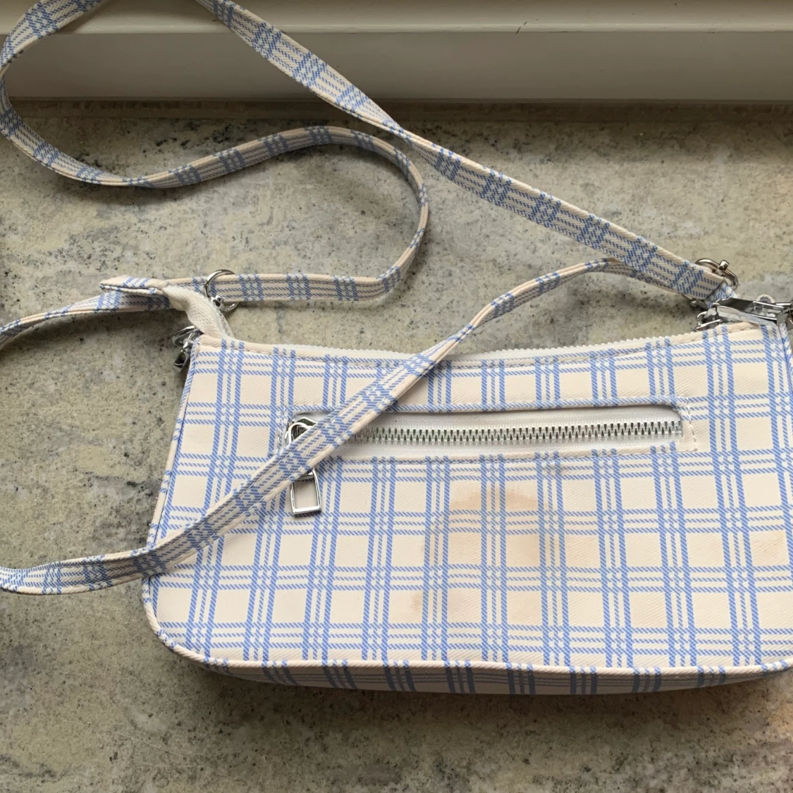 Säljer min så söta blå och vit rutiga väska!! Den har en fläck på baksidan men har använt den flera gånger och man märker den inte!! Skriv för mer info💞