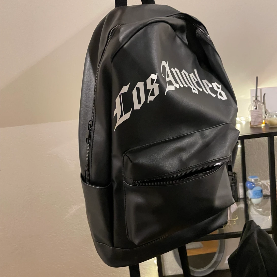En helt ny väska , svart och man får plats med hel del saker inne. De finns även fack utanför väskan men även i den.