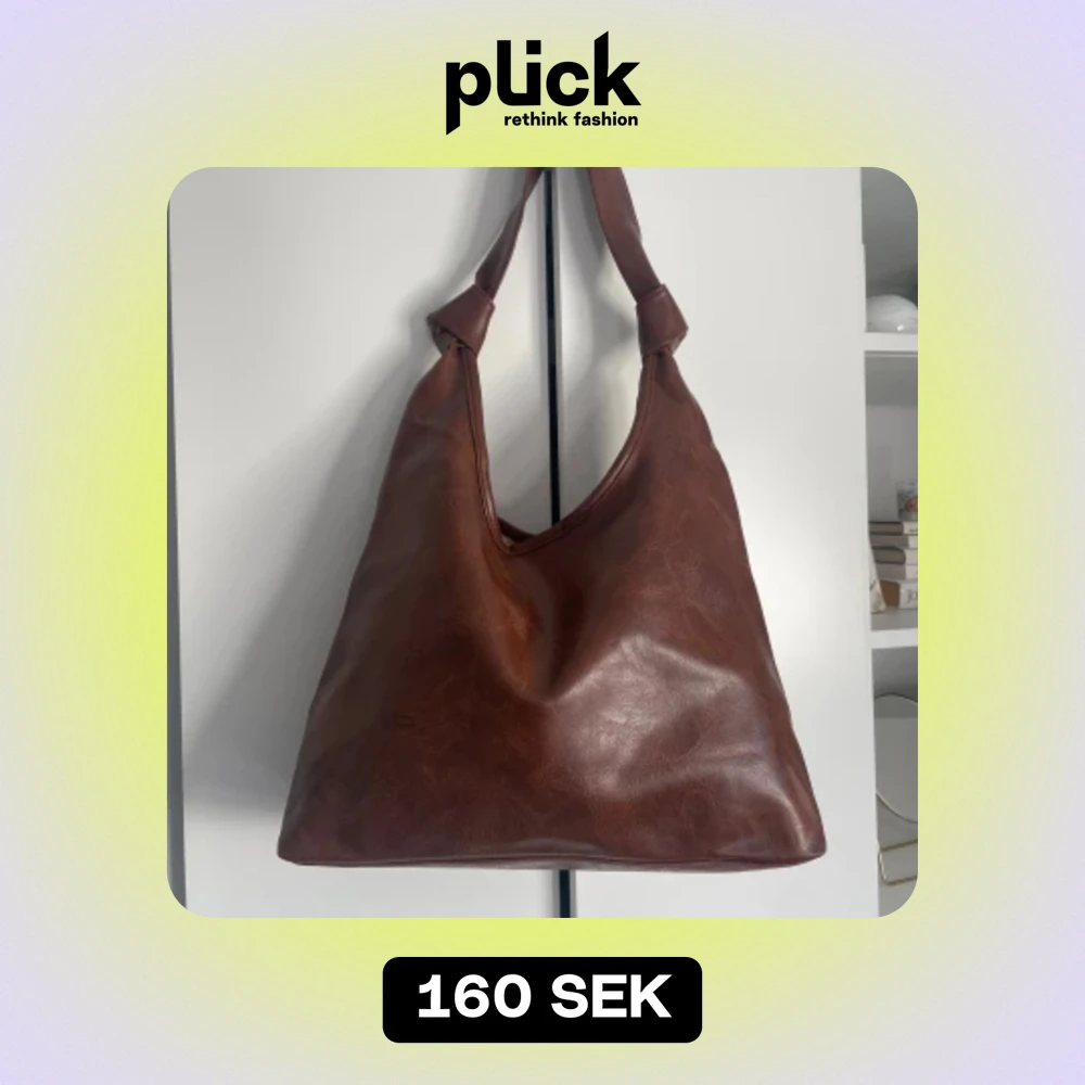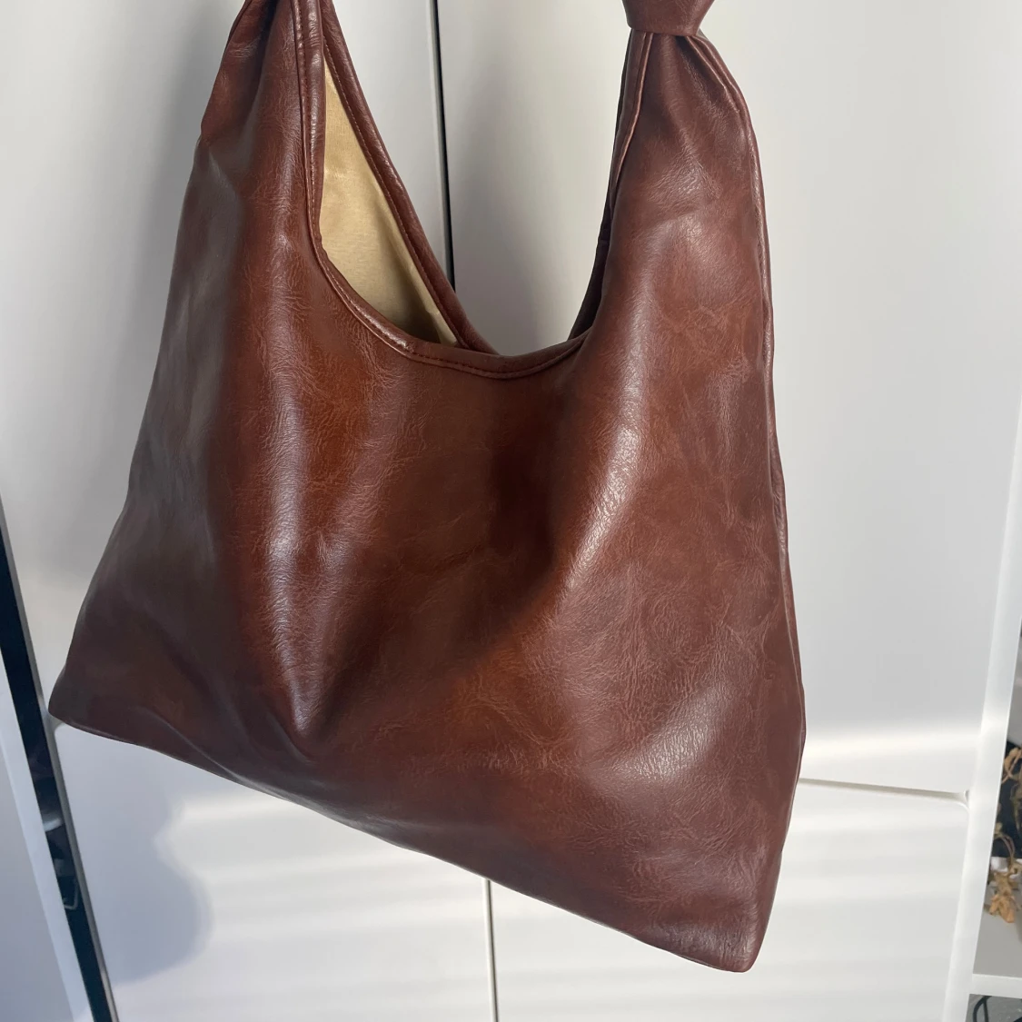 Brun pu-läder väska som passar perfekt till skolan. Det finns inga fack inuti. Knappt använd