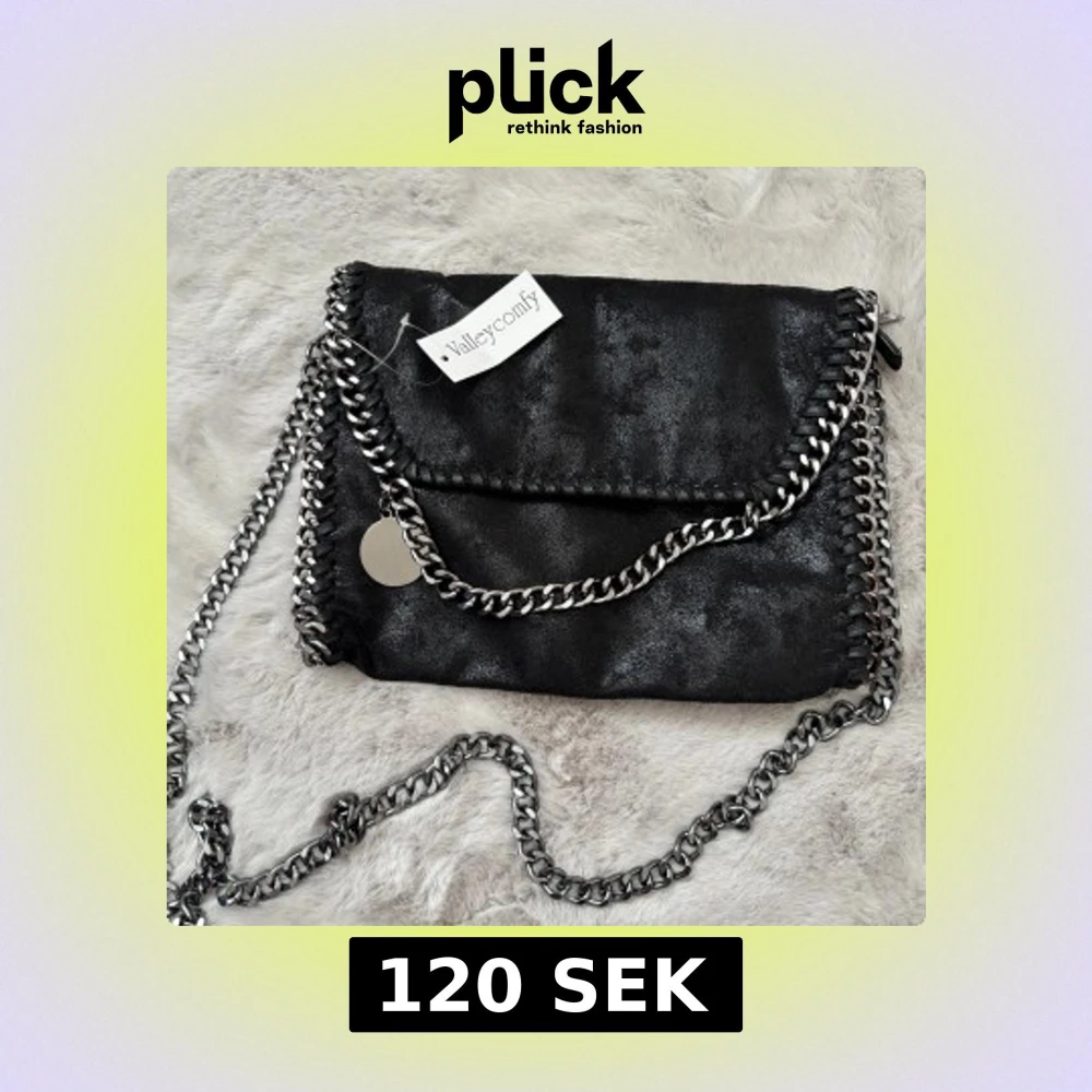 Supersnygg svart axelväska med kedjor längs kanterna och som axelrem. Väskan har magnetknäppning och innerfack med dragkedja. 💓Aldrig använd, lapp kvar!