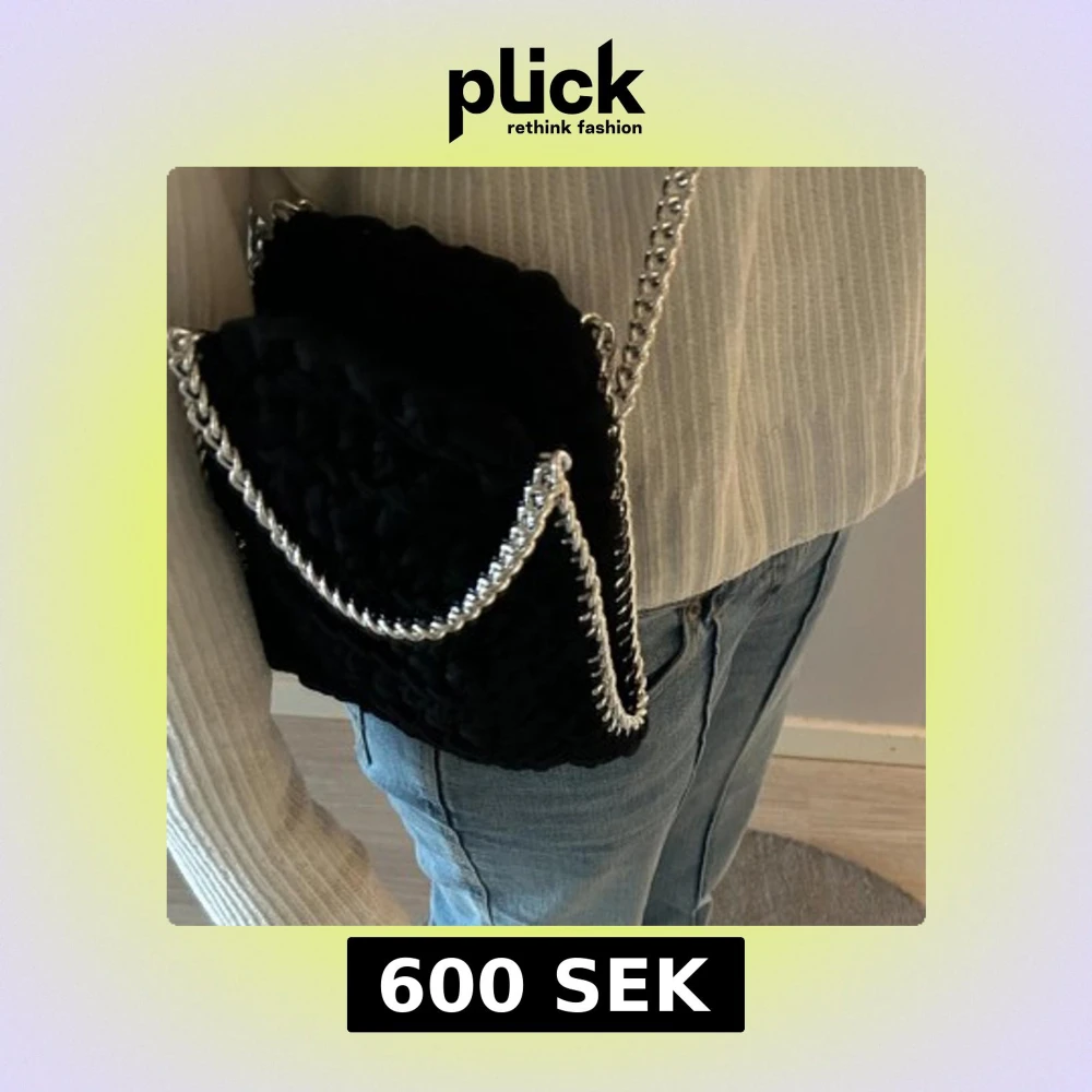 Jättefin virkad Stella McCartney liknande väska, svart med silver kedja💞den är ganska liten men det ryms mycket, mobil, nycklar…. säljer den för dyrare pris då den är handgjord🥰🥰