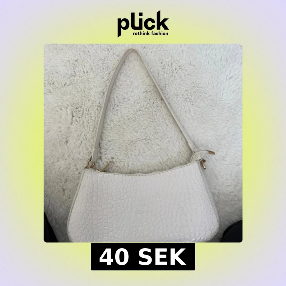 Snygg vit axelväska med croco-mönstrad yta och guldfärgade detaljer. Väskan har en smal axelrem och stängs med dragkedja. Perfekt storlek för det viktigaste och ger en clean look till din outfit.
