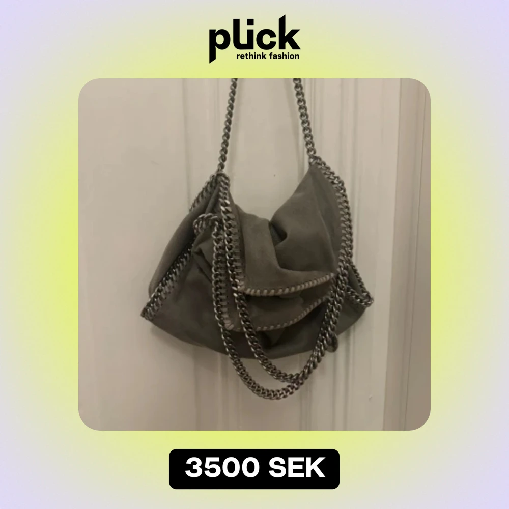 Jättefin Stella McCartney tote bag i den grå färgen. Väskan är köpt i Stella McCartney butiken i Stockholm. Älskar väskan och har använt den mycket men den är fortfarande i väldigt gott skick. Originalbox, kvitto och dustbag finns!!