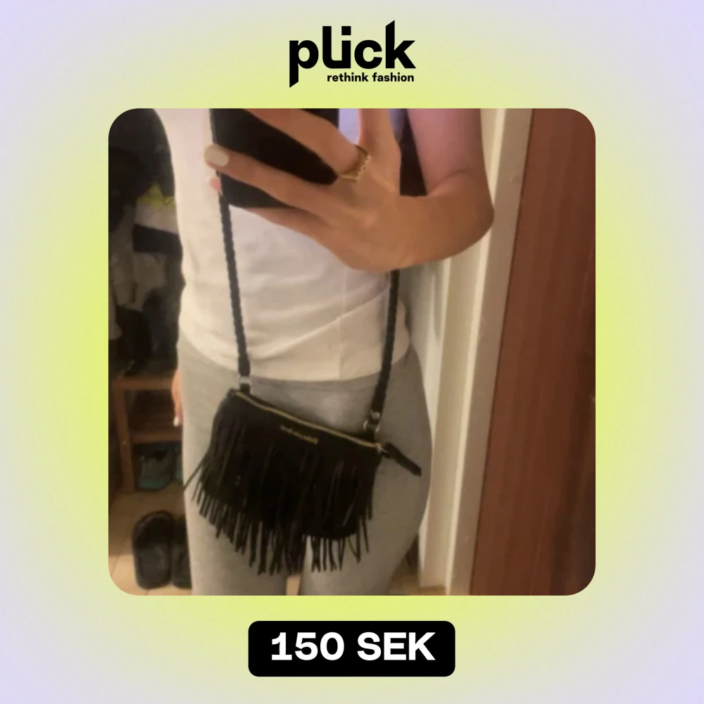 En vacker svart axelremsväska med guld detaljer. Vet inte vart jag har köpt den ifrån. Nypris:? Mitt pris:150kr💗