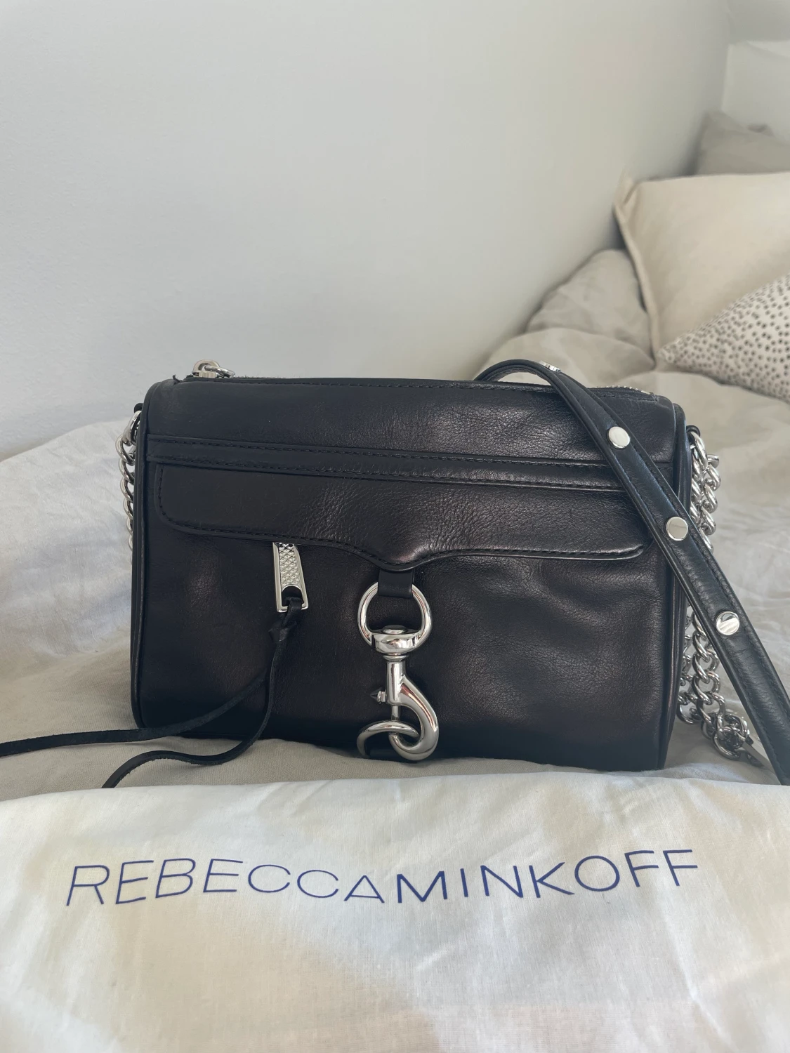 Säljer min Rebecca Minkoff väska då den inte kommer till användning. Väskan är i läder i oanvänt skick, dustbag medföljer. Bredd: 34 cm Höjd: 14 cm Djup: 4 cm