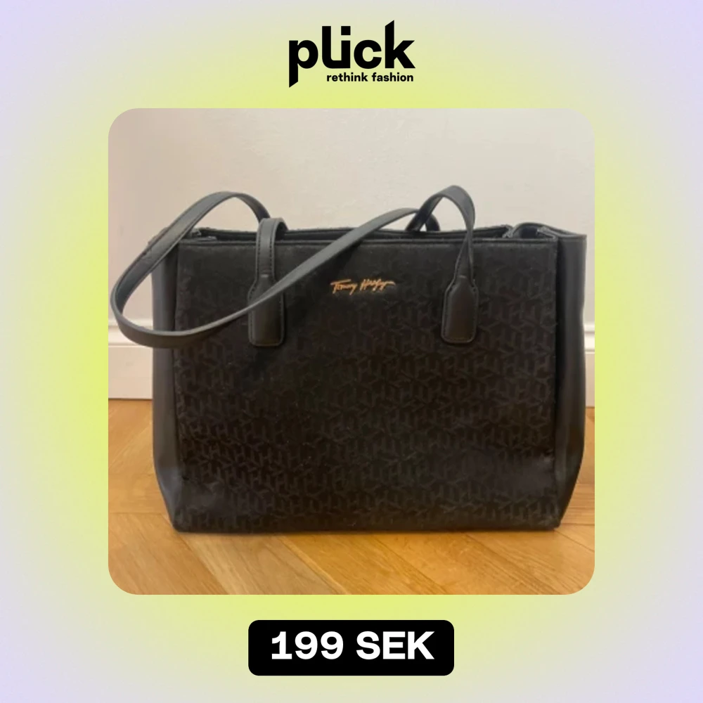 Snygg, svart handväska från Tommy Hilfiger. Använd ett par gånger men i mycket gott skick. 2 små innefack och ett stort fack i mitten <3