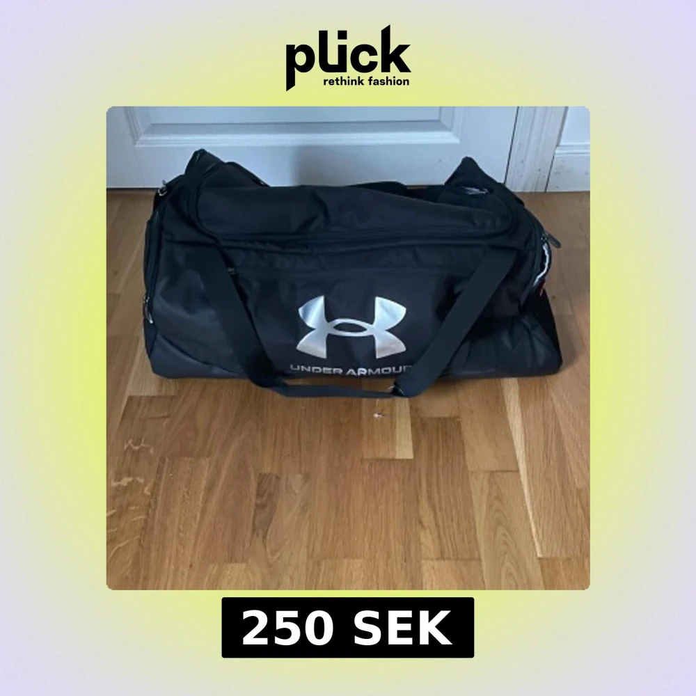 Stor svart träningsväska från Under Armour med vitt logotryck på framsidan. Väskan har flera fack med dragkedja och justerbar axelrem. Tillverkad i slitstark polyester och rymmer allt du behöver till gymmet eller sportaktiviteter.