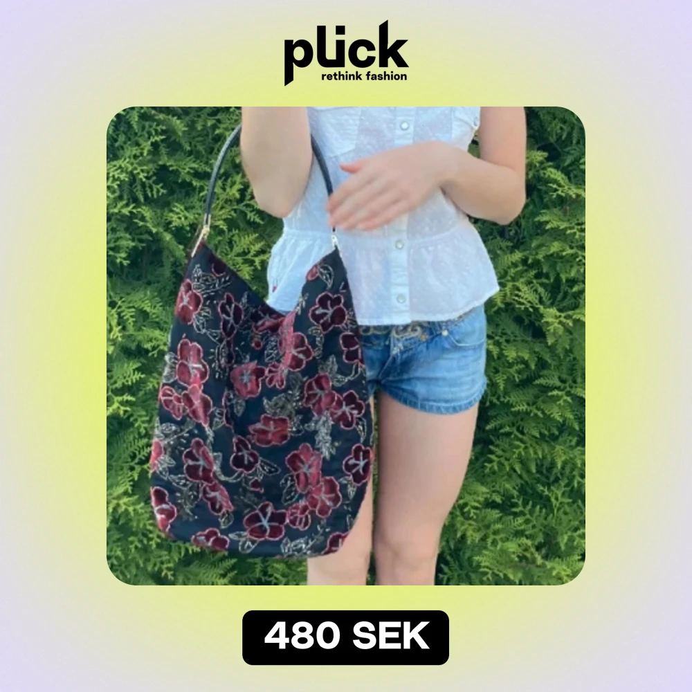 Verkligen så fin och unik blommig vintage väska med blommor i velvet (sammet) material och små insydda glansiga pärlor som reflekterar i färgerna. Jättefina detaljer och äkta läder på handtaget! Mycket utrymme på insidan! Skicket är som nytt!💋
