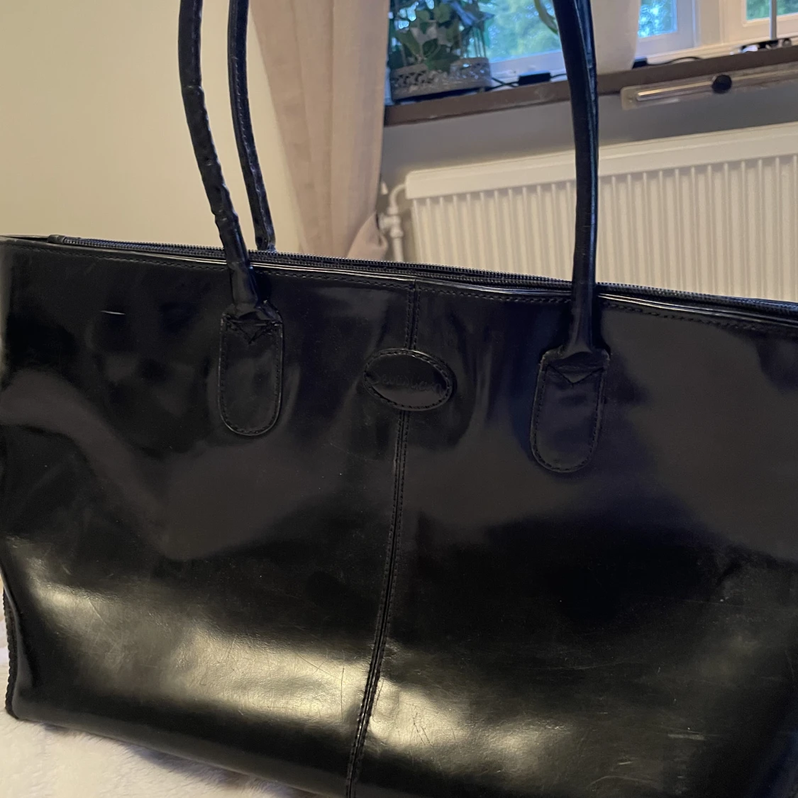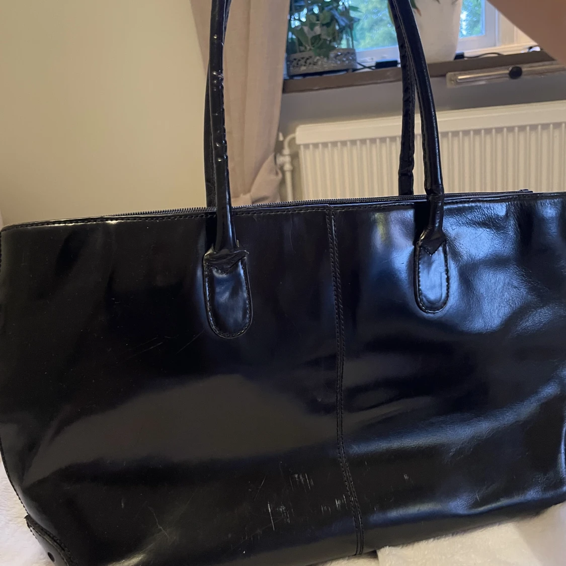 Väska glansig, har några få repor på baksidan men inget som man tänker på