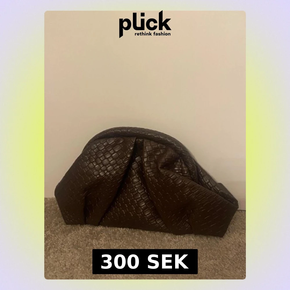 Helt ny!! Snygg brun kuvertväska i skinnimitation med flätad struktur och guldfärgad kedja som axelrem. Väskan har en mjuk, rundad form och stängs med magnetlås. Perfekt för att lyfta din outfit med en cool detalj.
