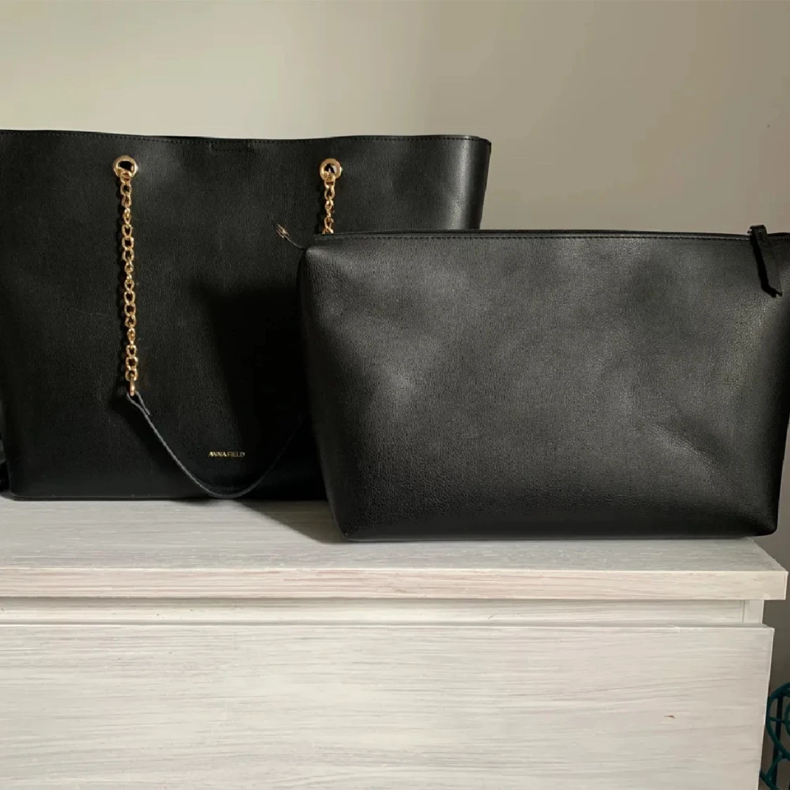 Jättefin väska från Anna Field som tyvärr inte kommit till användning. Det medför en mindre väska (bild 2 och 3) som fungerar som ett mindre fack i väskan. Den fungerar bra som skolväska då den är stor och rymlig. 💗