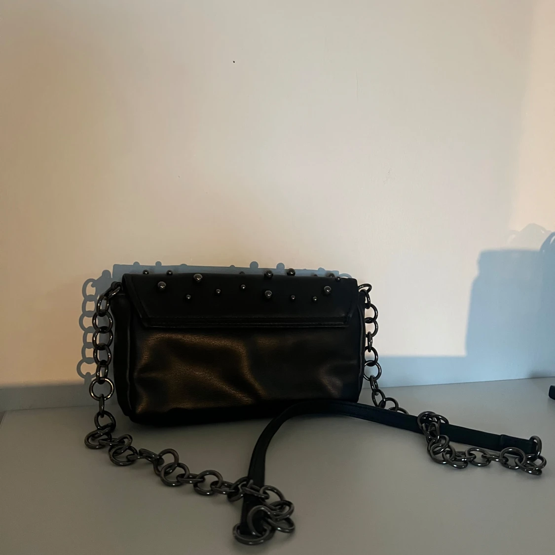 Säljer denna snygga väskan som går att ha på alla möjliga sätt. Den har ett långt band som man även kan göra kort, perfekt stolek på väska! Oanvänd.