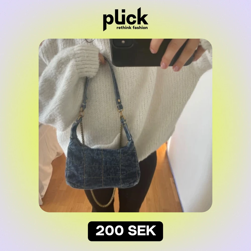 Väska i jeanstyg med guldiga detaljer, den har både en lång kedja och ett kortare ”handtag” i jeanstyg men båda går att ta av och på 💙