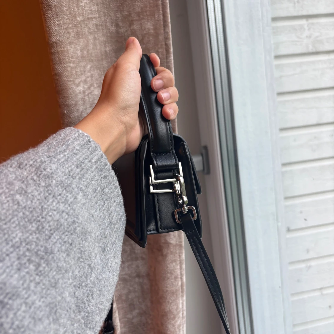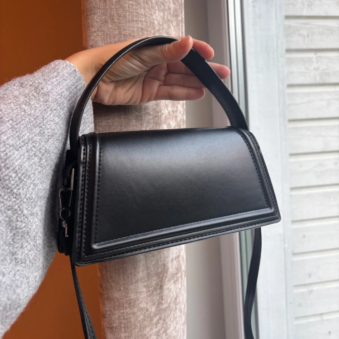 Svart stilren axelväska i skinn från Zara