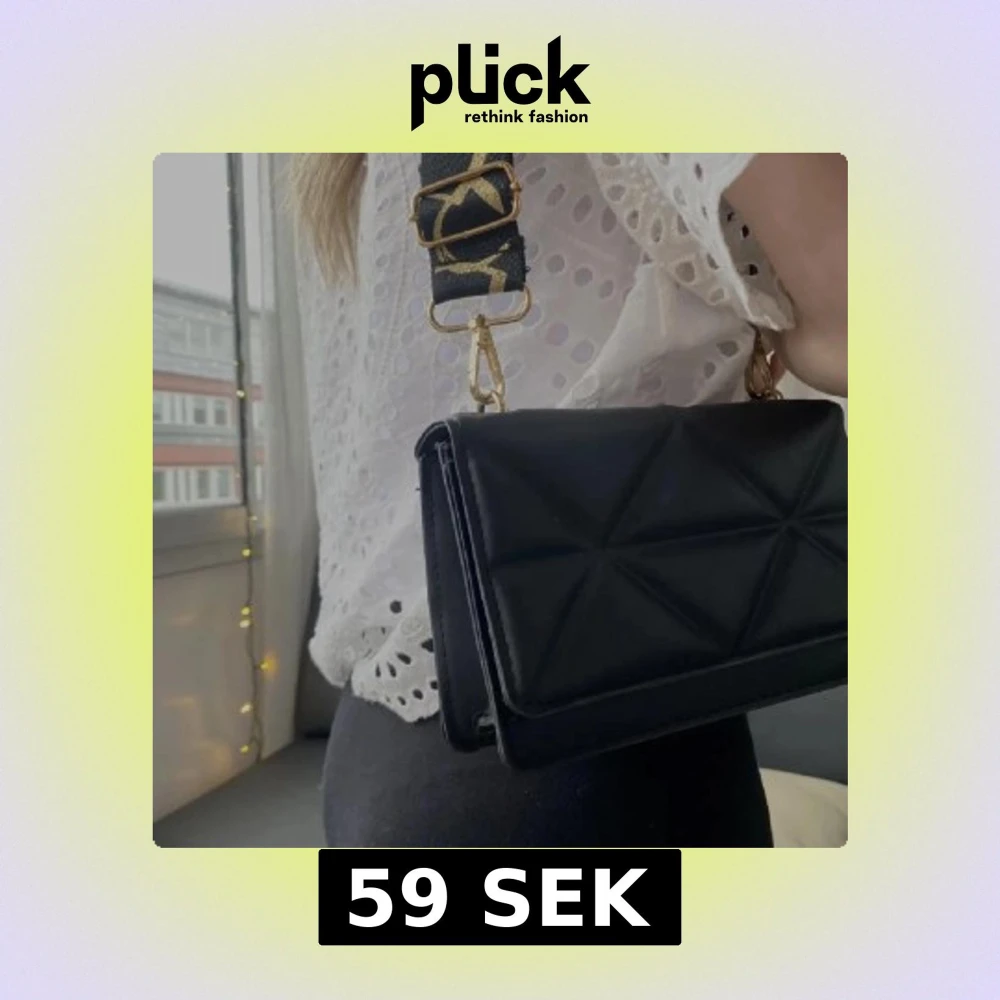 Superfin svart handväska med svart och guldigt band. Säljer då jag rensar ut väskor 🫶🏼
