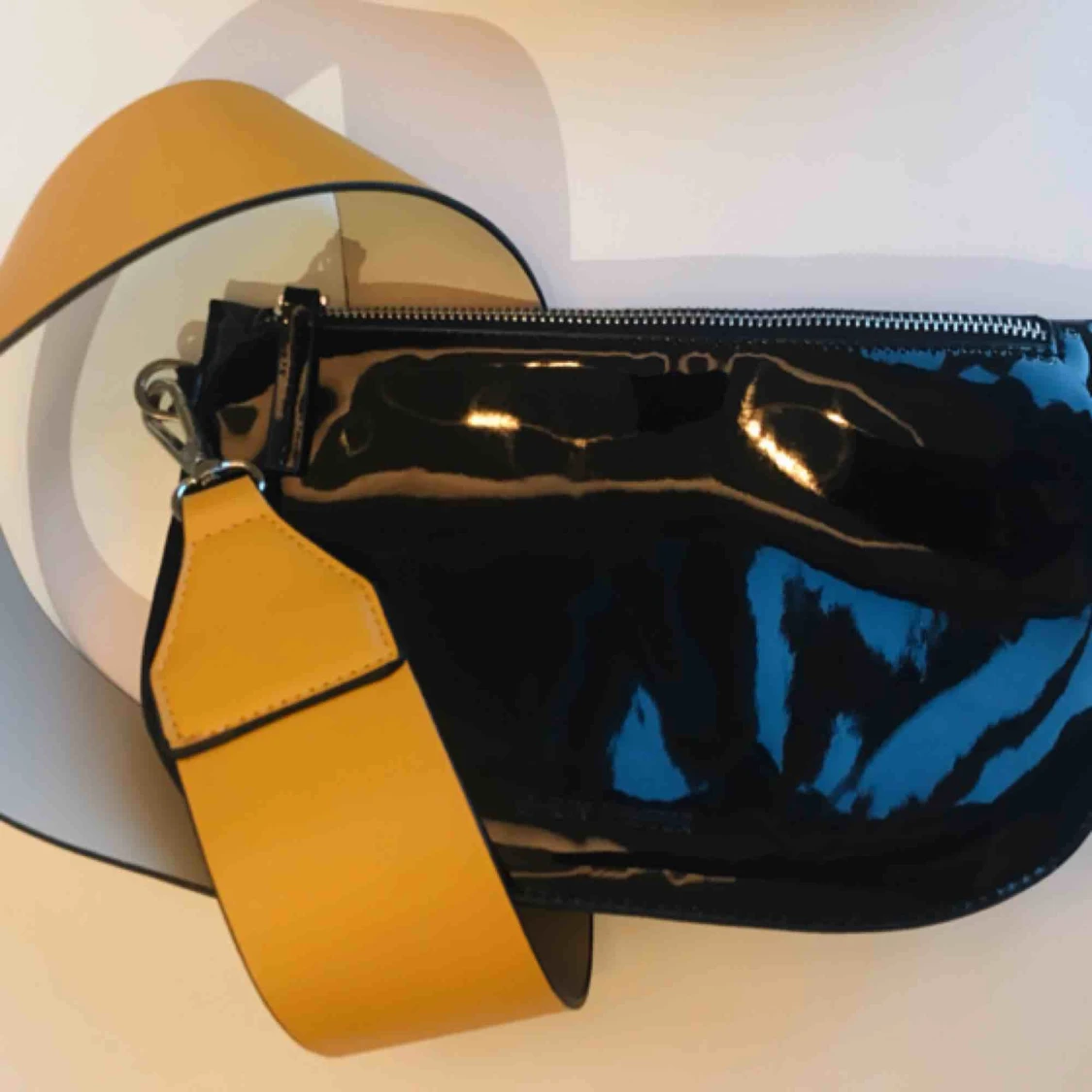 Svart patent-väska med avtagbart axelband. Kan användas som clutch.