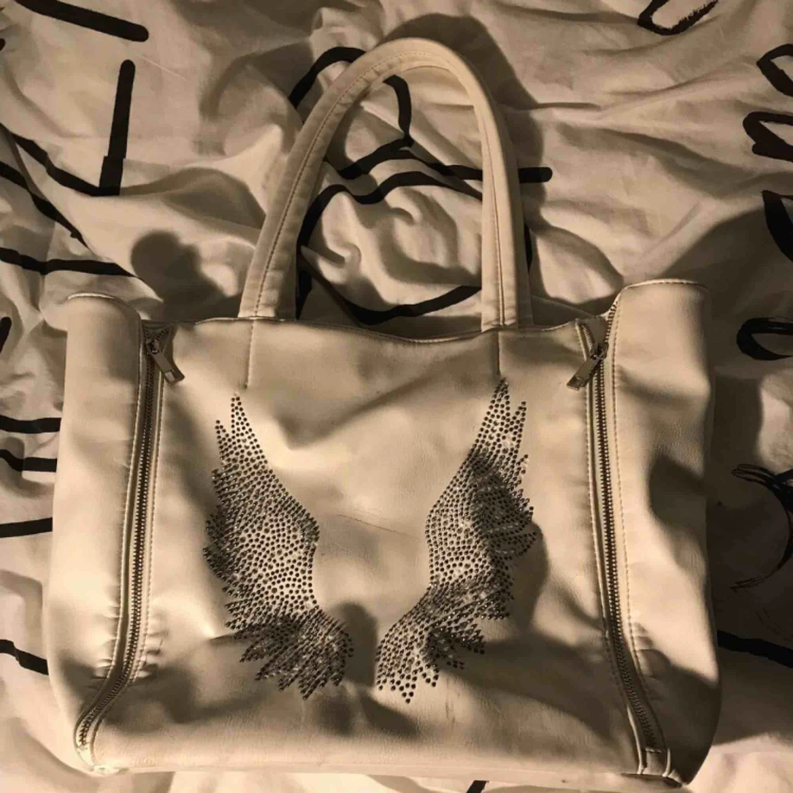 Säljer en jättefin vit väska från Chelsea med vingar på. Köpte den för jätte längesen men använder inte längre. Den är lite sliten och därav priset. Kan frakta om det skulle behövas.