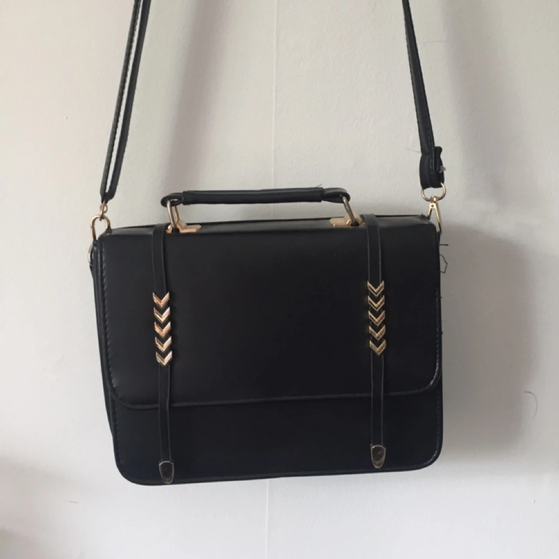 Mellanstor axelremsväska med gulddetaljer