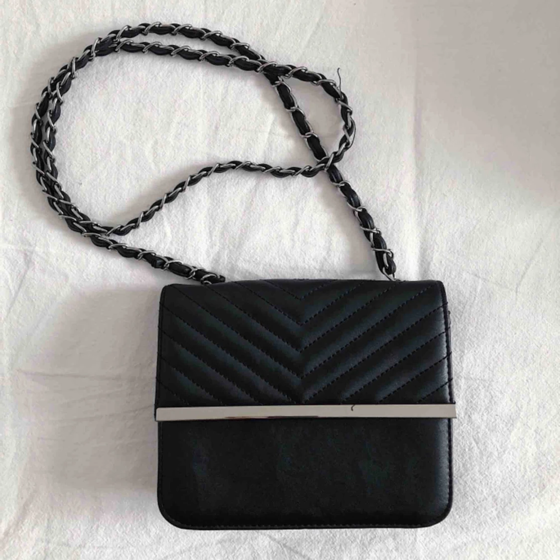 säljer denna fina axelremsväska 🖤 är lite osäker på vart den är köpt men förmodligen så är den från Ginatricot. Frakt tillkommer men den delar vi på!:) Höjd: 15 cm Bredd: 21 cm Längd på axelremmen: ca 1 m