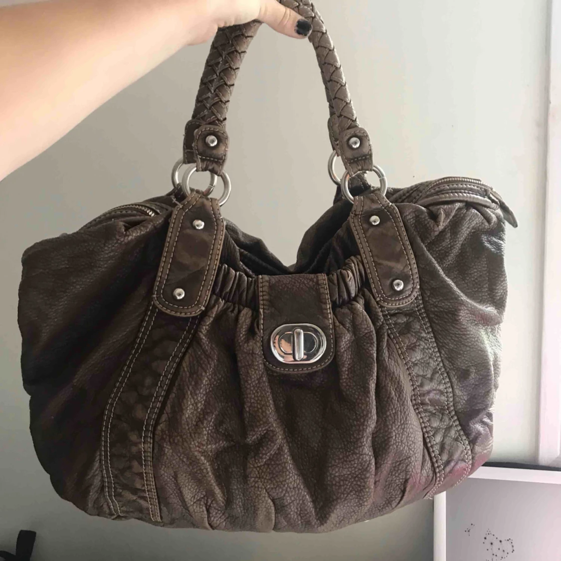 Snygg brun skinnväska med mycket rymlighet från GUESS