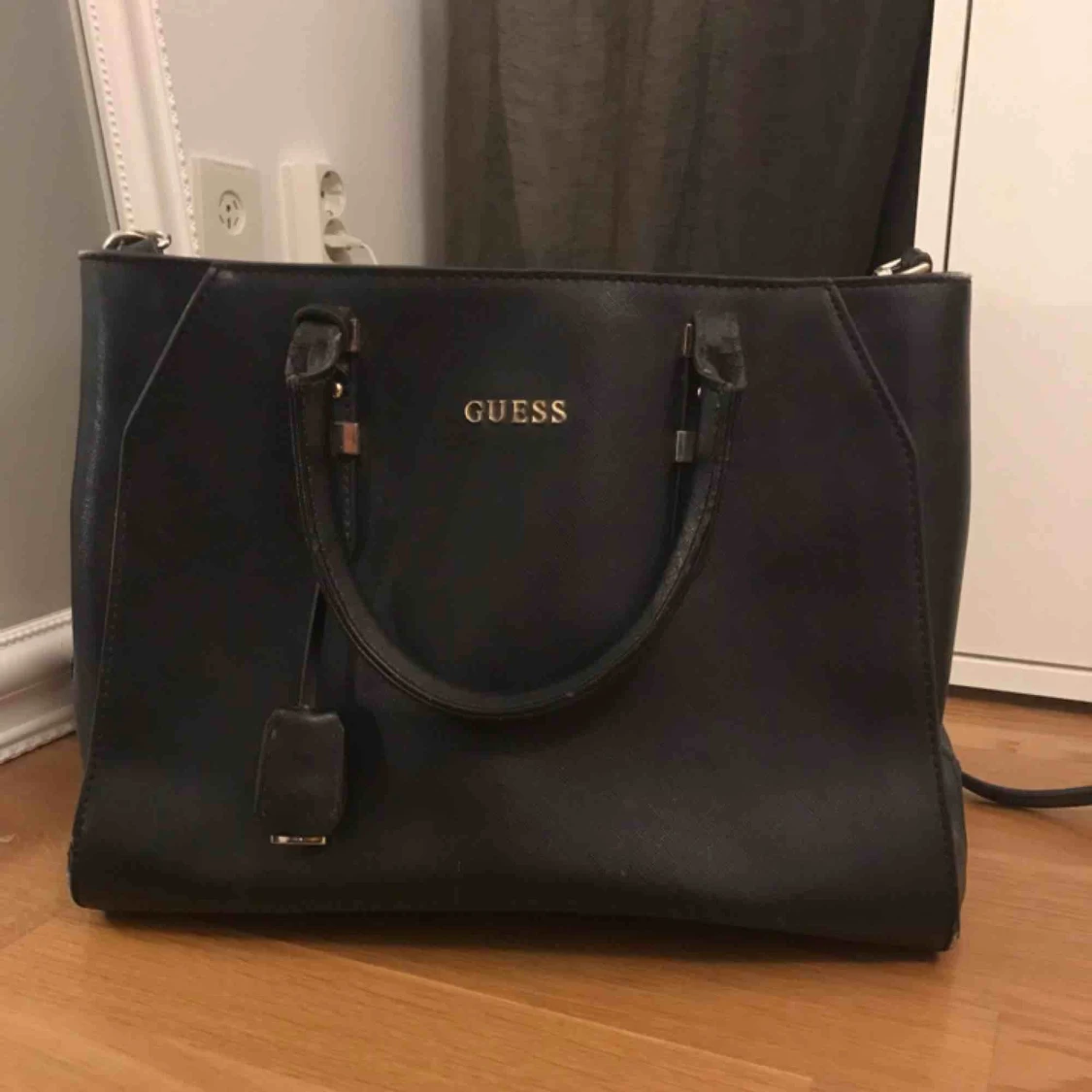 En ”skolväska” ifrån guess, är väl använd då lädret är lite uppskovet men själva väskan är i bra skick! Nypriset låg på 2 000kr när jag köpte den men det har nog höjts nu!
