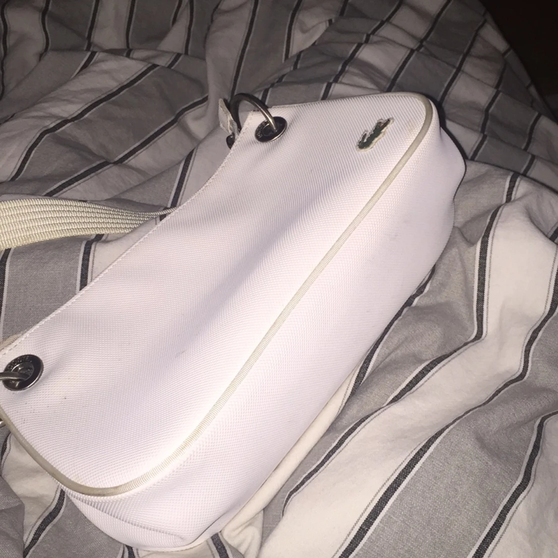 Vit Lacoste väska,aldrig använd. Betalas med swish och köparen står för kostnad av frakt
