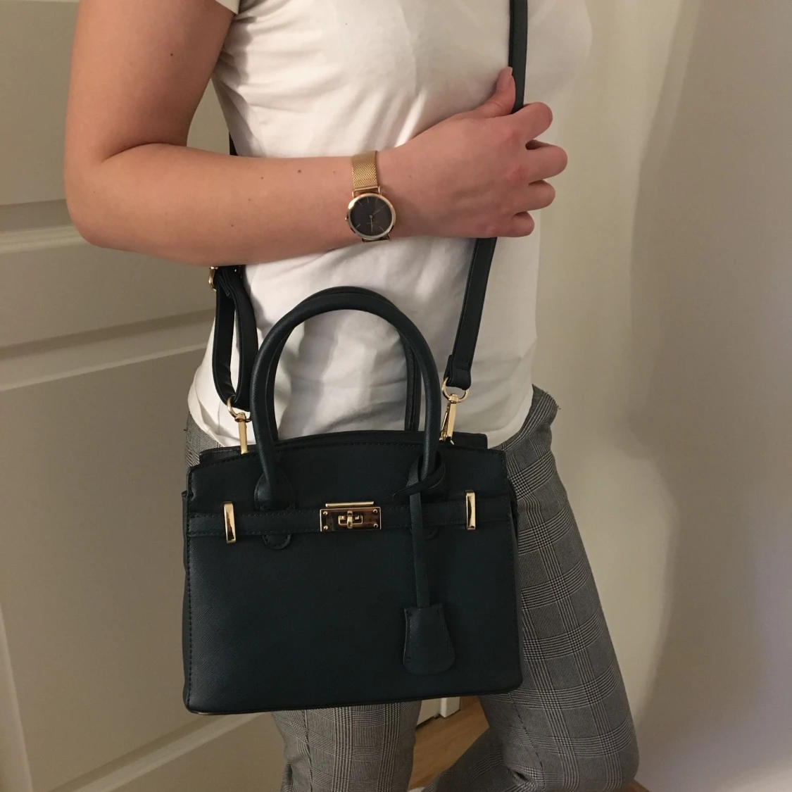 En väska som inte kommit till användning & är stilren! Färgen är marinblå ( ser svart ut på bild) med gulddetaljer! Frakten ingår!