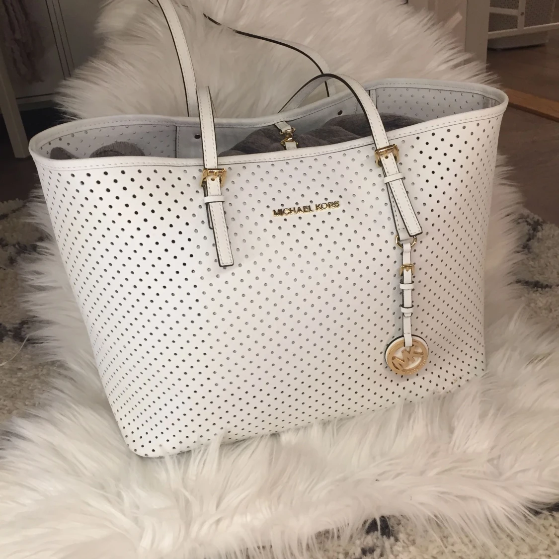 Knappt använd vit äkta Michael kors väska, nyskick. Säljs för bästa bud