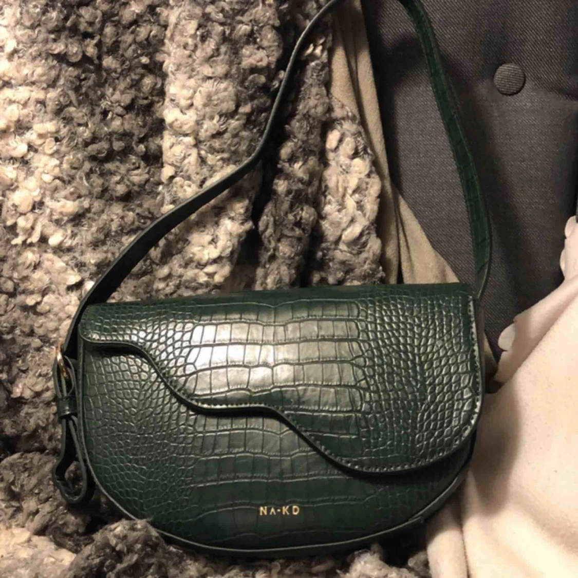 Skitsnygg mörkgrön väska från Nakd. Rymlig, lätt att stänga och reglerbart band.