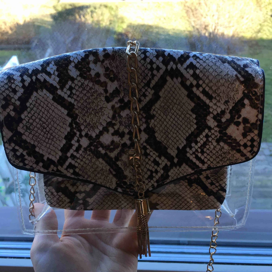 Liten genomskinlig väska med ormskinn(fake) och guld detaljer.