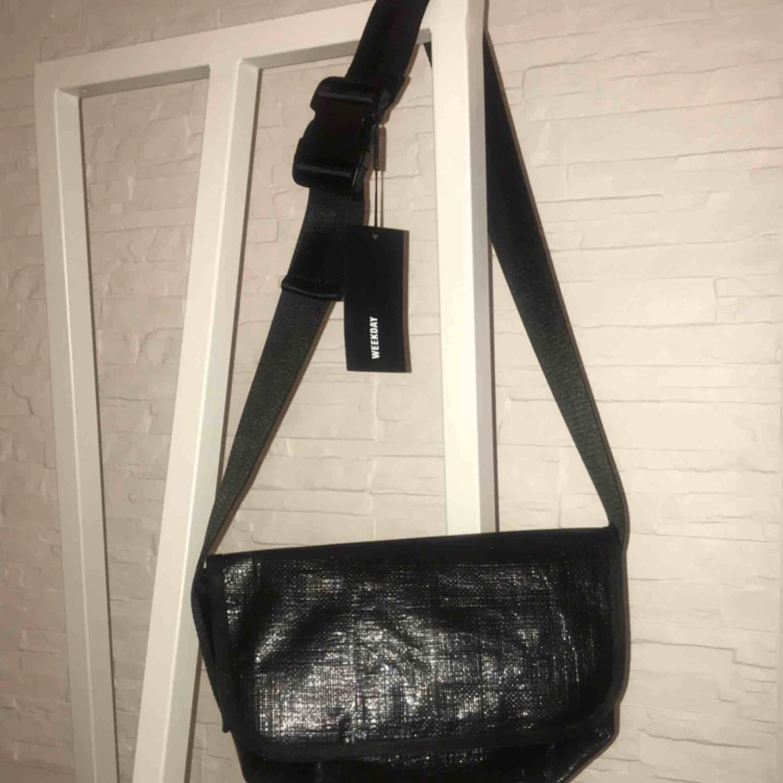 Säljer denna trendiga jättefina rymliga väska ifrån weekday som aldrig är använd, prislappen är på. Inköpspris 350 kr. Fraktar eller möts upp i Stockholm.