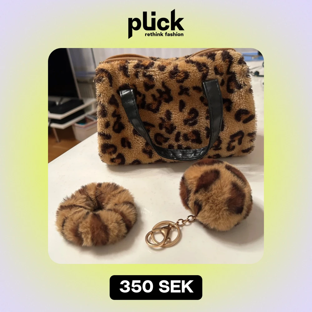 Säljer en supercool leopardmönstrad väska i fluffigt material med svarta handtag. Väskan har en dragkedja upptill och är perfekt för att ge din outfit en vild touch. Medföljer gör en matchande scrunchie och en fluffig nyckelring. Perfekt för höst och vinter!