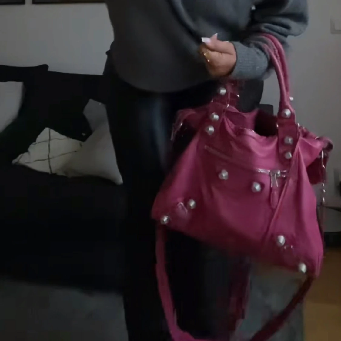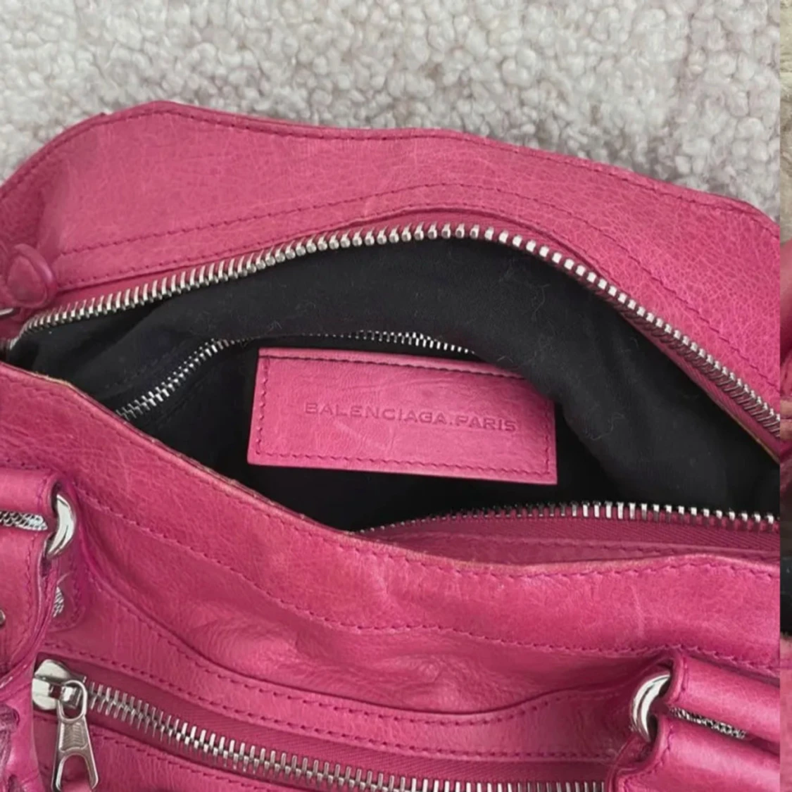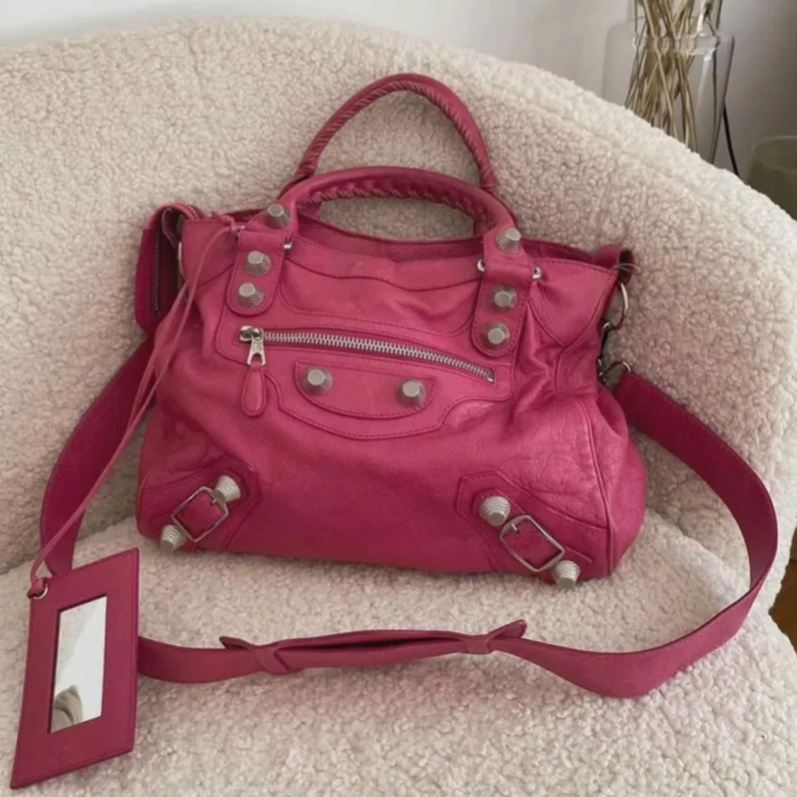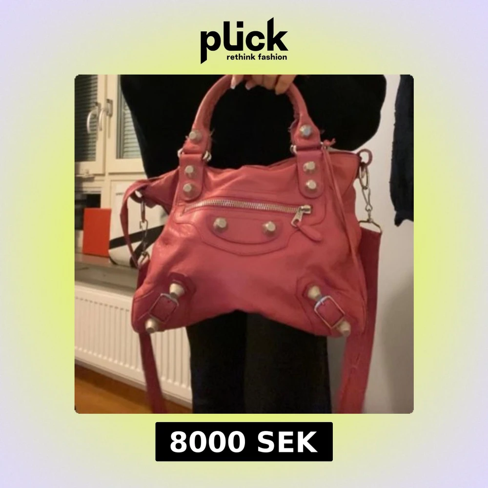 Intressekoll på min älskade rosa skinnväska från Balenciaga med silverfärgade detaljer och dragkedja. Väskan har både handtag och en justerbar axelrem för flexibel användning. Såå sjukt snygg och touchar upp en outfit såå mycket🤩lägg prisförslag. Har äktahetsbevis!