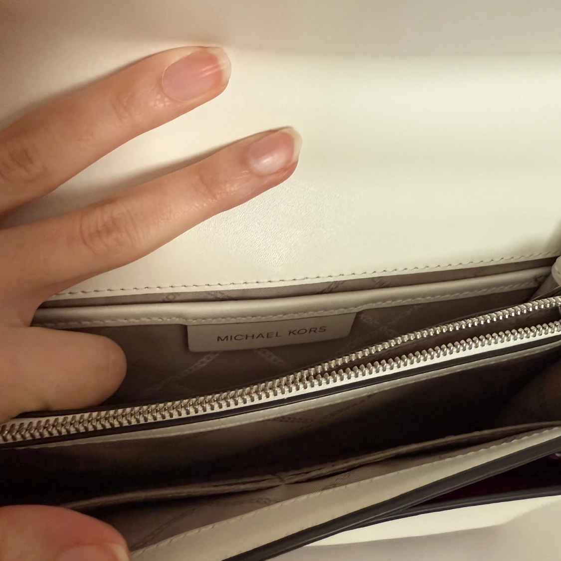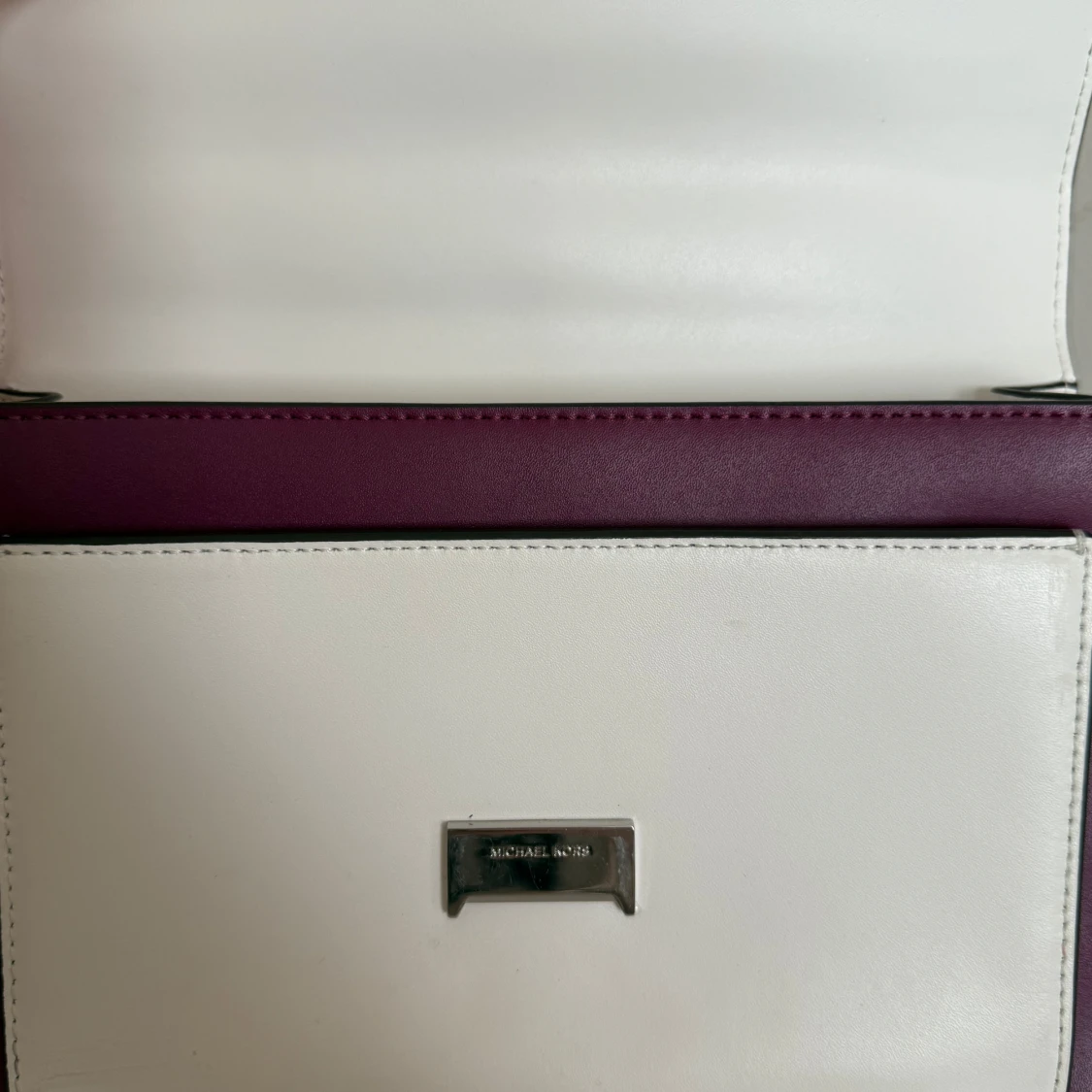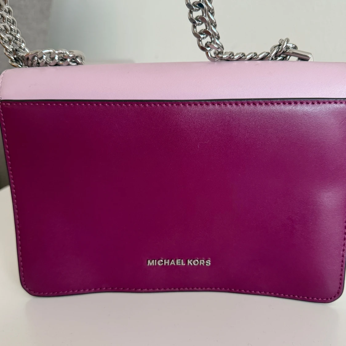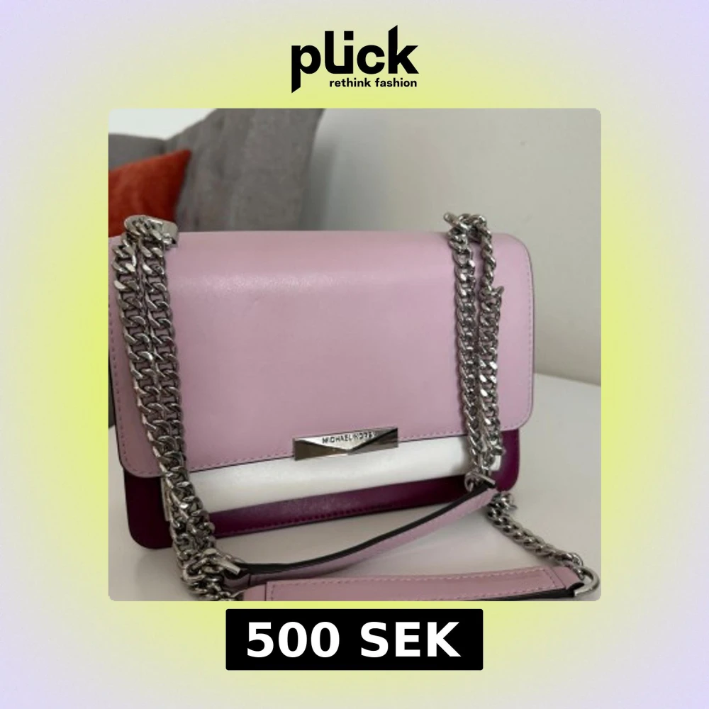 Säljer en snygg axel och handväska från Michael Kors i rosa, vinrött och vitt skinn. Perfekt för dig som vill ha en stilren och trendig accessoar. Använt några gånger och är felfri