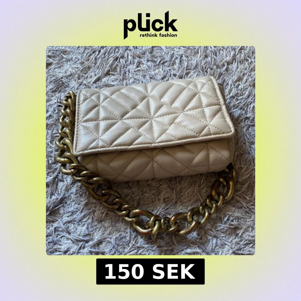 Snygg beige axelväska med quiltat mönster och en rejäl guldfärgad kedja som axelrem. Väskan har ett praktiskt magnetlås och ett rymligt inre fack. Perfekt för att ge din outfit en stilfull touch. Kan gå ner i pris vid snabb affär💖