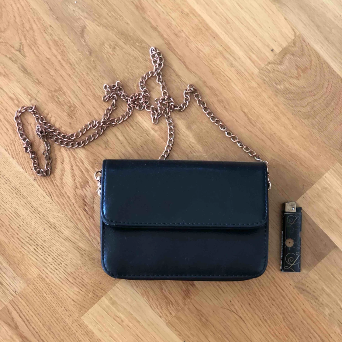 Fin liten väska som är köpt utomlands. Lite skavt på gulddetaljerna och en söm inuti som är lite trasig men inget som stör. 17x15cm, skinnimitation. Betalning via swish och köpare står för frakt!