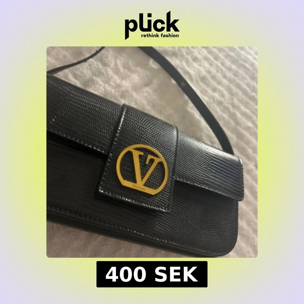 Elegant Vezzano Crossbody Bag - Black Faux Leather with Lizard Effect Original price: approx. 1300 SEK | Selling for: 400SEK Stylish and versatile bag from Vezzano, featuring a structured silhouette and gold-tone hardware. The textured faux leather gives a luxurious lizard-skin effect - perfect for everyday use or special occasions. Coming from a Scandinavian brand that takes inspiration to Italian bags Adjustable strap • Magnetic flap closure with bold V-logo Gold hardware