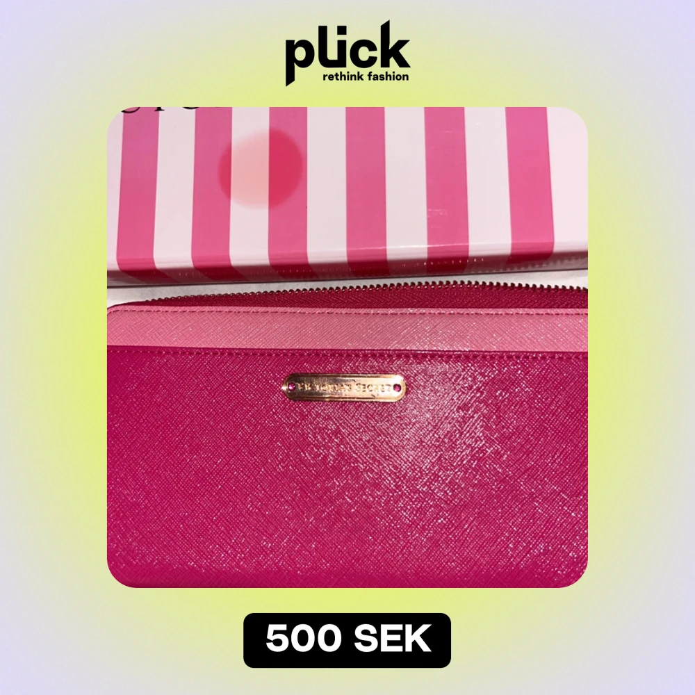 Säljer en superfin rosa plånbok från Victoria's Secret. Den har en snygg glansig finish och en dragkedja upptill. Perfekt för att hålla ordning på kort och kontanter. Kommer i en söt randig presentförpackning. Perfekt som present eller till dig själv!