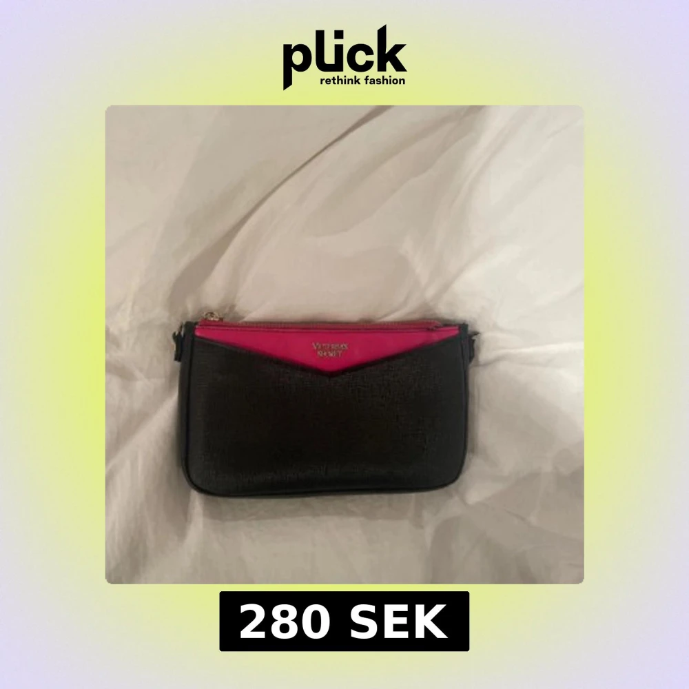 Säljer en snygg svart axelväska från Victoria's Secret med en rosa detalj upptill och silverfärgad dragkedja. Väskan har en justerbar axelrem med kedjedetaljer och är perfekt för att bära det viktigaste. Loggan syns framtill på väskan. Vet inte bara om den är riktig eller inte men jag tror inte det tyvärr✨