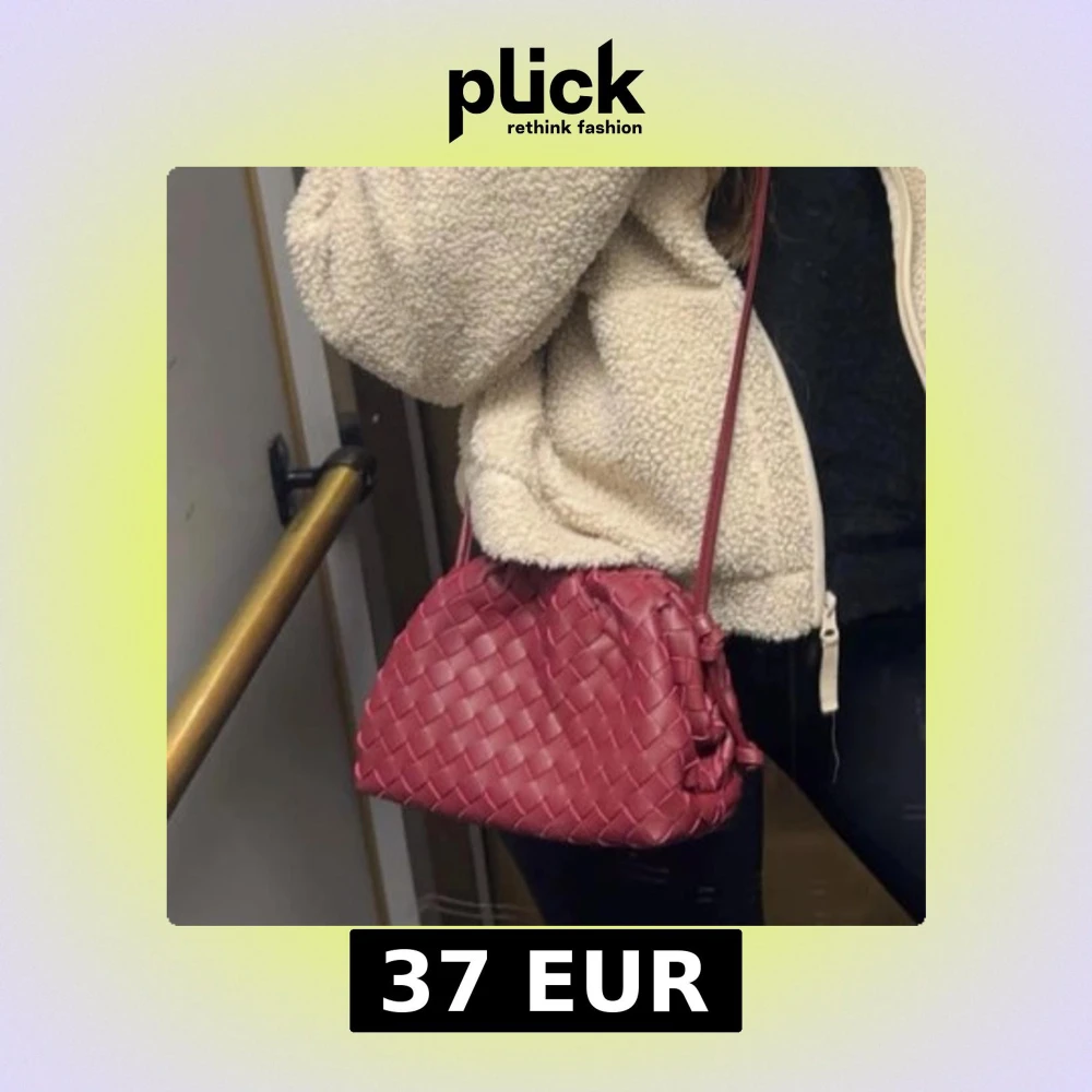 Snygg vinröd axelväska i flätat skinn. Perfekt för att ge en färgklick till din outfit. Väskan har en stilren design. Bottega venetta liknande