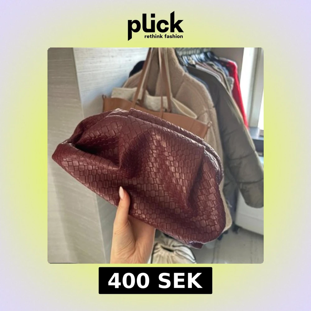 Snygg vinröd kuvertväska med ett trendigt ormskinnsmönster. Perfekt för att ge en touch av stil till din outfit. Väskan är kompakt och lätt att bära med sig. Knappt använd!