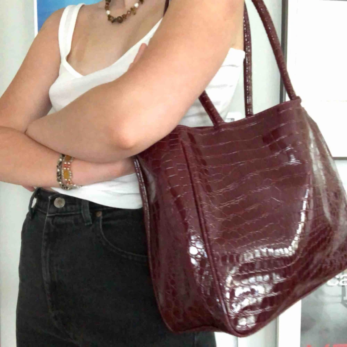 feett fin vinröd lackväska!! inte äkta skinn, men så fin ormskinnsimitation. 🍋FRAKT INGÅR🍋