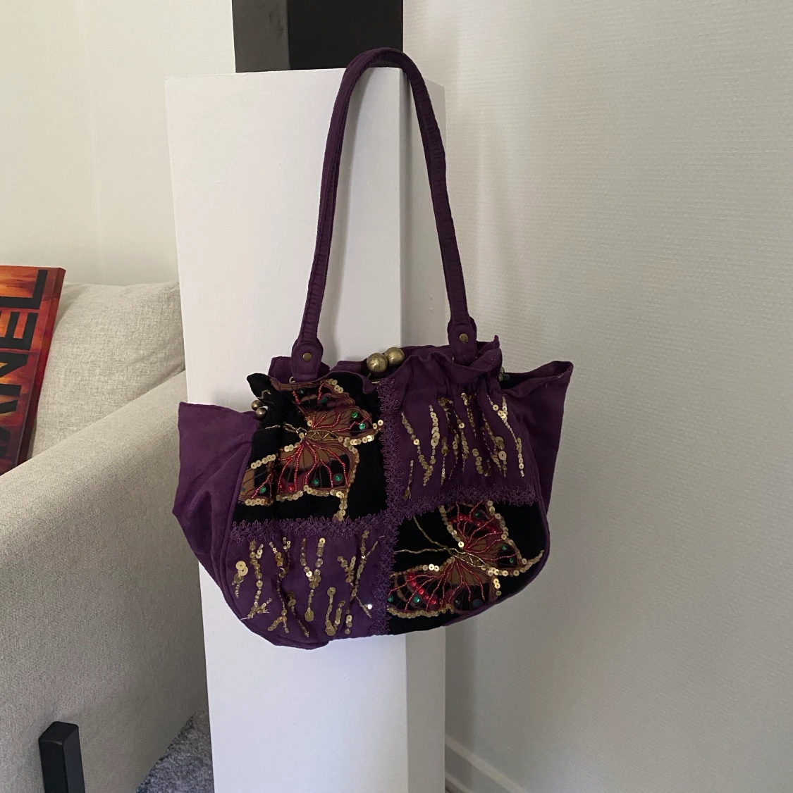 Axel väska från tidigt 2000tal, inga märken och gjord av mocka.